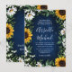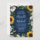 Royal Blue Sunflower Country Wedding Invices - apresentam um fundo de madeira azul ou real de celeiro marinho decorado com margaridas, girassóis, verde, hálito de bebê e lírio do vale. NOTA: este convite é pré-dimensionado para 4,5 polegadas por 6,25 polegadas. Um tamanho 5x7 também está disponível neste design. Exibir a coleção encontrada nesta página para esse produto e para itens correspondentes.