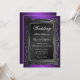 Convites de casamento com um tema gótico, com impressão de um quadro metálico ornamentado na frente, com gradiente roxo a preto, e detalhes do casamento sobre preto. Excelente para casamentos de Halloween ou casamento temático. Correspondendo Cartões de Resposta RSVP, Salve os Anúncios de Data e Obrigado Cartões (Itens comprados separadamente):