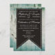 Convites para Casamento Russo da Madeira do Barno do País, com um fundo de grãos de madeira de casca em apuros, com tom azul e faixa marrom com o convite de casamento. A parte de trás do convite é também o design de madeira de celeiro. Estas são perfeitas para casamentos no campo ou casamentos no celeiro.