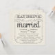 Coma, beba e seja casado — convites para casamento rústicos de campo, estilo Vintage — Rolamentos roxos, encaracolados e tipografia de moda antiga em um histórico antigo de pergaminho branco de marfim. Adicione seus nomes e informações de casamento neste modelo fácil de usar. A caligrafia elegante, mas divertida e esbranquiçada, em estilo chalkboard, pode ser modificada para o seu tema de casamento retrô formal ou semiformal. O estilo moderno casual é perfeito para casamentos contemporâneos modernos, com um toque divertido de encanto sofisticado para a noiva e noivo tradicionais. Entre em contato conosco para obter ajuda com a personalização se precisar de espaço adicional para os detalhes do casamento. Outros tamanhos e estilos de quadro, além de estilos de coordenação para chás e casais. NOTA: Este design de produto é configurado apenas para cartões quadrados — requer postagem extra.
