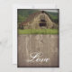 Rustic Country Barn Wedding Convites com um design único e angustiado, com um celeiro no topo e madeira russa angustiada no fundo. O mesmo design de celeiro rural também está nas costas com a palavra "Amor" na escrita. Estes convites de casamento são excelente de casamentos de celeiro ou casamentos de campo rústicos. Itens correspondentes: