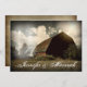 Casamento Rustic Country Barn Convites com um celeiro rural e pastagem com sol brilhando atrás dele. Estas são excelentes para casamentos no campo e casamentos no celeiro. O verso tem um design antigo castanho, antigo, em vintage, sobre o celeiro, para que você possa ler mais facilmente o convite de casamento. Apenas mude a redação para a sua.