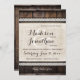 Os cartões RSVP correspondentes podem ser encontrados aqui (copia e pasta): https://www.zazzle.com/z/oous2?rf=238549940190363232 Madeira Rústica de Casinha e Burlap Wedding InvitationTemplate em um fundo de madeira escura com design de burlap, de linho amolecado e aparador de renda. Apenas mude a redação para torná-la sua. Impresso na sua escolha de papel.