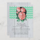 Convite de casamento rápido com a menta e o design cor-de-rosa: linhas de fêmur da casa da moeda (zigzags) e rosas de coral. Criada na textura de fundo de madeira branca angustiada. Convidado perfeito para casamentos de chic.