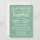 Coma, beba e seja casado — convites de casamento de campo, estilo Vintage — Adicione os nomes da noiva e do noivo e informações de casamento nesta modelo fácil de usar. Rolamentos roxos, encaracolados e tipografia de moda antiga em branco radiante sobre fundo de burlap top verde. A caligrafia elegante, mas divertida e esbranquiçada, em estilo retro chalkboard, pode ser modificada para o seu tema de casamento formal ou semiformal. O estilo moderno casual é perfeito para casamentos modernos modernos modernos, com um toque divertido de encanto sofisticado para casais tradicionais. Entre em contato conosco para obter ajuda com a personalização se precisar de espaço adicional para os detalhes do casamento. NOTA: Mostrado nos cartões de convite padrão do tamanho A7. Outros tamanhos e estilos disponíveis.