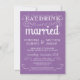 Coma, beba, e seja casado — convites de casamento rústicos de campo, estilo Vintage — Rolamentos roxos, encaracolados e tipografia de moda antiga em um fundo alegre e radiante de roquídea lilac roxo. Adicione seus nomes e informações de casamento neste modelo fácil de usar. O elegante, mas divertido e caprichoso, escrevendo de script de estilo chalkboard pode ser modificado para o seu tema de casamento formal ou semiformal. O estilo moderno casual é perfeito para casamentos contemporâneos modernos, com um toque divertido de encanto sofisticado para a noiva e noivo tradicionais. Entre em contato conosco para obter ajuda com a personalização se precisar de espaço adicional para os detalhes do casamento. Outros tamanhos e estilos de quadro disponíveis.