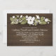 Vintage, convite de casamento rústico com peonias, flores de madeira de cão acompanham anêmonas em um buquê de jardim. Linda textura antiga de fundo de madeira. Convidado perfeito para o casamento do celeiro do país. Cheio de flores brancas convida para trás.