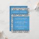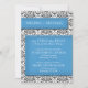 Trendy e convites modernos para seu casamento. Apresenta uma design/ilustração com pontos azuis sobre uma cor damasco preta e branca. Informações, instruções ou detalhes adicionais podem ser impressos no verso (opcional).