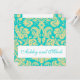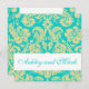 Estes elegantes convites para Casamentos tema damasco de Aqua Cream têm os nomes da noiva e do noivo na frente, em uma faixa branca e um convite formal para casamento na parte de trás. Elke Clarke ©2012. Use os prompts ou selecione "personalizar" para opções de edição de cheio.
