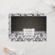 Bonitos convites para Casamentos tema damasco de preto e branco. Adicione suas informações pessoais e textos. Acentos de fita metálica de prata.