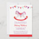 Bonito cavalo de balanço roxo e vermelho pintado à mão com estrelas e bunting gráfico acima, convites para chuveiros de bebês neutros em termos de gênero. Outros itens correspondentes estão disponíveis. Hobby original de bebês, hobby, cavalo de balanço, branco, pintor de aquarela bonitinho e design gráfico, de Sarah Trett para www.mylittleeden.com no zazzle.