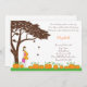 Convide seus convidados para um chá de bebê com tema de Outono ou Halloween com esses belos convites. Eles apresentam uma futura mamãe vestida de laranja, segurando sua bolsa de doces ou travessuras, um campo de abóboras, uma árvore ventosa com iniciais esculpidas e folhas caindo. Personalize também as iniciais na árvore.