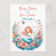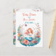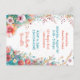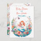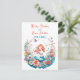 Convites para chá de bebê de menina com ilustração de uma sereiazinha em um leito de flores em aquarela. As cores usadas são rosa, coral, laranja, amarelo e azul.