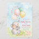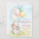 Chá de menina elefante com adoráveis elefantes de menina aquática com balões em um céu bonito e fundo de grama. Estes convites para bebês elefantes são facilmente personalizados para o seu evento simplesmente adicionando os seus detalhes.