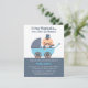 Se você bigode... é um cavalheiro!Um convite para chás de fraldas bonitinho, hipster e caprichoso para manter os convidados divertidos! Tem um bebê bonitinho em um carrinho de bebê. De acordo com o texto engraçado, o bebê tem bigode e está vestido com uma jaqueta de smoking azul, arco e chapéu de cima. Cores de castanho e azul que são perfeitas para aquele cavalheiro que está a caminho! Personalize facilmente com os detalhes do seu partido.