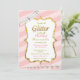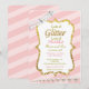 Pink & gold Glitter & Pearls Baby Shower convites dizem "Muitos Glitter muitos PEARLS (nomes) estão tendo uma menina!" (Você pode facilmente mudá-lo para gêmeos dizendo: "Dobre o brilho duas vezes o PEARLS (nomes) está tendo DUAS MENINAS!" Este convite para chás de fraldas tem listras cor-de-rosa no fundo (na parte frontal e traseira) e um quadro de ouro brilhante nele. Há também muitas pérolas neste convite fazer perfeito para a sua princesa.