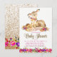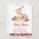 As raparigas fazem convites para o chá de bebê com adoráveis mães e veados bebês num lindo fundo floral. Estes convites para o chá de bebê de cervo são facilmente personalizados para o seu evento simplesmente adicionando os seus detalhes. Você também pode mudar a cor de fundo nesses adoráveis convites para chuveiros de veados. Este é um design impresso sem brilho real, arcos, etc.