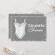 Lingerie de convites para a Noiva. A placa de Chá lingerie tem um ursinho branco e sotaques de cinza. Personalize com os detalhes do seu partido.