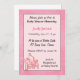 Convites para duche de bebê para garotas. Design tem um carregando de cegonha uma menina. Use modelo fácil para adicionar suas informações a este convite cor-de-rosa.