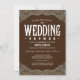 Estes convites para um chá de casamento são castanhos escuros com um design branco, bege e e azul claro.