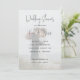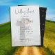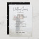 Chá de casamento com a fotografia do casal como fundo. Cinzas neutras para texto com script manuscrito grande para o título do partido e os nomes do casal. Carregue sua foto que será apagada por uma camada de branco transparente. O reverso é preto com um padrão de pequenos corações.