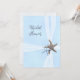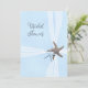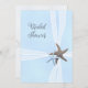 Convites de chá de panela de peixe-estrela da caixa de presente. Duas estrelas-do-mar azuis e castanhas e fitas brancas decoram a frente desta placa plana e quadrada com texto de "Chá de panela". Personalize facilmente todas as linhas de texto de modelo, frente e verso, usando as linhas fornecidas na caixa à direita. Este cartão quadrado exigirá mais postagem e vem com um envelope branco.