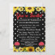 Organize seu próximo churrasco com charme rústico usando este convite de churrasco de fazenda lindamente projetado, apresentando um fundo vintage em bolinhas preto e branco, girassóis e uma ilustração de conjuntos de churrasqueira exibidos de forma elegante na frente do cartão. Perfeito para um churrasco campestre, piquenique ou uma festa no celeiro, este convite combina elegância de fazenda com diversão casual.