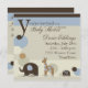Um elefante de pelúcia, girafa e tartaruga em fila para anunciar o chá de fraldas com círculos ao redor do convite. Basta mudar suas informações usando o modelo fácil.