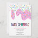 Convites para Chuveirinho de Bebê com Gota de Glacê Doce e confeitos coloridos no verso.