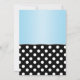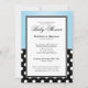 Esses sofisticados convites para Baby Shower de dois lados são projetados com bolinhas brancas padrão sobre preto e um gradiente azul. Escolha seu tipo de papel. Linen seria uma escolha perfeitamente elegante para este design. O texto é personalizável, muito descritivo e adequado.