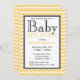 Convites de chuveiro de bebê, em forma de na moda, com um padrão zigue-zag chevron amarelo e branco. Personalize com os detalhes do chá da Mamãe e escolha o tipo de papel também!