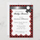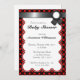 Um alternativo chic para o seu convite de chá de fraldas médio com um design vermelho e preto.