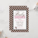 Convites de chá de bebê de dois lados e na moda com bolinhas brancas sobre marrom de ambos os lados. Personalize com os detalhes do chá da Mamãe e escolha o tipo de papel também!
