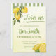 Este convite de chuveiro de limão foi inspirado pelo brilho e simplicidade dos limões. Mais conhecidos por anunciar que o verão está realmente aqui, enquanto espalham um pouco de sol por onde passam, este convite de limão mostra a natureza brilhante de um limão, enquanto presta homenagem ao sabor que ele adiciona a uma variedade de coisas, assim como o seu motivo de celebração! Apresentando limões pendurados em um galho e descansando em um canto, essas deliciosas frutas rodeiam uma coleção sofisticada e delicada de fontes verdes da natureza, tornando-o o complemento perfeito para o seu chá de bebê ou de noiva! Um fundo amarelo de aquarela une o visual para uma explosão de sol e felicidade!
