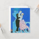 Convites de Beijo Arte à Meia-Noite. Ilustração Art Deco de 1921. O artista francês Georges Barbier era famoso por sua linda e viva representação da vida noturna parisiense. Meia-noite Beijo mostra um casal parado em uma varanda olhando para o rio enquanto um barco passa a distância. O homem veste um smoking preto e inclina-se para um beijo enquanto a mulher veste um vestido rosado, arco rosa e faixa de cabelo rosada. Duas pombas azuis voam sobre elas para o céu noturno. Um presente romântico para fãs de Georges Barbier, Art Deco e Vintage Paris.