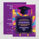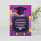 Este convite é personalizado para um formando masculino, oferecendo uma legenda frontal personalizável que celebra suas realizações em estilo. Seja o seu nome, uma mensagem espirituosa, ou um toque pessoal, este espaço permite a individualização. No verso, contra um pano de fundo roxo, o texto colorido apresenta os detalhes do partido. Desde a data e a hora até o local e as informações de RSVP, cada detalhe pop contra o fundo vibrante, garantindo que os convidados sejam bem informados e mantendo a estética dinâmica do convite. No geral, este convite promete uma celebração cheia de orgulho, camaradagem, e entusiasmo enquanto amigos e familiares se reúnem para honrar as conquistas do formando masculino.