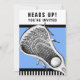 Convites para festa ou evento de Lacrosse com design criativo de taco de lacrosse em fundo azul-claro.