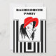 Convites de Festa de solteira do estilo Art Deco glamouroso! design preto e branco clássico e simples que realmente faz o pop de chapéu vermelho da senhora!