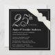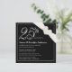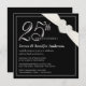 Convites para Aniversário de 25 Anos de Casamento prateados e pretos, elegantes e acessíveis, com escrita formal e design de laço romântico -- Personalize o nome, data e detalhes para essa ocasião feliz. **NOTA: Tamanho para cartões de convite QUADRADOS. Selos e cartões de agradecimento correspondentes disponíveis.