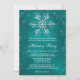 Celebre a temporada com amor e boa alegria com esses convites elegantes e festivos de festas de festas de neve com um bonito floco de neve com padrão de folha e gelo em forma de coração e reflexões de neve por detrás dele. Esta linda joia tingida verde azul de turquesa azul azul azul azul de cor azul parece brilhar. Perfeito para um evento formal de janta de gravatas semiformais ou negras e dança com uma empresa de natal de inverno ou uma empresa de escritório de temas de férias ou uma festa corporativa. Trabalho de arte © Chrissy H. Estúdios, LLC. Todos os direitos reservados.