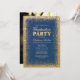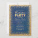 Convites para Festa de formatura Dourada e com brilho. Folha de Ouro Faux com brilho em fundo azul. Texto brilhante. Fácil de personalizar.