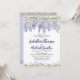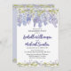 O design floral romântico apresenta uma asteria púrpura e azul esfregando graciosamente a sua vinha. A videira e apenas algumas flores armam o fundo do convite. As mesmas duas fronteiras estão no verso do convite festa de noivado. Uma coroa de wisteria está no centro com os nomes dos casais de casamento. Há um fundo púrpura/azul macio no verso e branco na frente. Você também pode mudar estas cores para coordenar com o seu esquema de casamento.