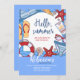 Um convite com tema de verão com elementos de praia em vermelho, branco e azul. Apresentado como um convite de despedida de solteira, é perfeito para todas as celebrações de verão. (<a href='https://www.freepik.com/free-vector/hellos-summer-background-with-quote_1168985.htm'>Criado por Freepik</a>). <br/><br/>O cartão é fácil de personalizar com sua redação, fonte, cor da fonte, opções de forma de papel e escolha de seis tipos de papel.<br/><br/>Não é exatamente o que você está procurando? Todos os nossos produtos podem ser personalizados para atender às suas necessidades sem custo adicional.<br/><br/>Basta entrar em contato conosco em heartfelthelper@gmail.com.<br/><br/>Produtos coordenados disponíveis: Basta perguntar!