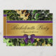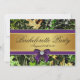 Convites à Festa de solteira da Camo de Caça Roxa e Dourada - convidem suas meninas para uma festa de solteira para celebrar o casamento da noiva. Você também pode alterar o título do evento para chá de fraldas, chá de panela, festa de aniversário ou o que quiser. Cada convite apresenta um impressão de camo de caça que consiste em folhas, latidos, grama, galhos e muito mais. Uma banda dourada impressa aparada em violeta (ameixa) ou púrpura escura segura a frente e atrás. A frente também apresenta um arco impresso com um ornamento em diamante. Estes convites à festa de solteira de camo para caçar são destinados a uma unidade populacional de cartão básica de alta qualidade; entretanto, você pode mudar o estoque para linho, feltro (gravado), reciclado e várias tonalidades metálicas se quiser com o número 2 (escolha seu estilo, tamanho e tipo de papel) abaixo do botão laranja adicionar ao carrinho. Também nessa opção é apresentada uma lista dos custos adicionais de uma reserva de cartão mais antiga. Cada convite tem um envelope branco.