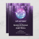 Uma bola de discoteca destaca estes convites de Fim de Semana de Festa de solteira. Seus detalhes em letras brancas chic e os detalhes do fim de semana no verso.