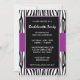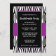 Um design de zebra roxa e asqueroso é apresentado neste convite de festa de solteira de tendências.