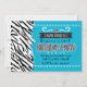Convites para Festa de aniversario de meninas de Teal e Zebra. Personalize com seu próprio texto. Isso também está disponível para compra na minha loja com uma FOTO adicionada a ela para personalizar ainda mais.
