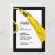Convites de graduação moderna com boné de formatura de ouro em fundo preto.