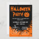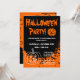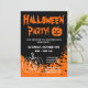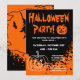 Convites de festas de Halloween com abóboras e bruxas entaladas em uma vassoura.... convites personalizados com design assustador. Texto de anúncio personalizável e cor de fundo. Design de preto e laranja bonito com ilustrações assustadoras. Maneira mais barata de fazer seus próprios folhetos.