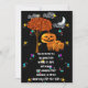 Crianças, Crianças ou Convidados para o Dia das Bruxas Amigos da Família, Apresentando um Céu Negro, Lua Crescente, Nuvens e estrelas mais coloridas abundam. Família de Abóbora Bonita ao lado de uma árvore com cor de queda laranja Folhas e um Grande BOO! Com os olhos no topo das cartas, todos convidando você para uma festa de colheita de Halloween mais assustadora, mas não muito assustadora. Perfeito para a festa do Dia das Bruxas da Igreja!